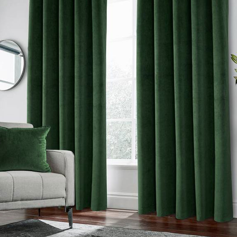 A luxurious beautiful, smooth velvet fabric, 100% blackout quality curtains with pencil pleat taped top.